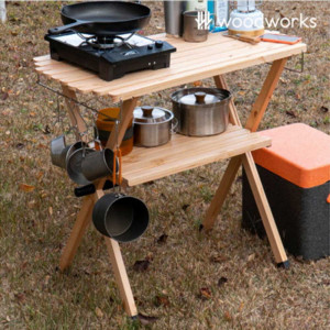 • [우드웍스] 캠핑 우드 쉘프 스탠딩 테이블 WW-218150