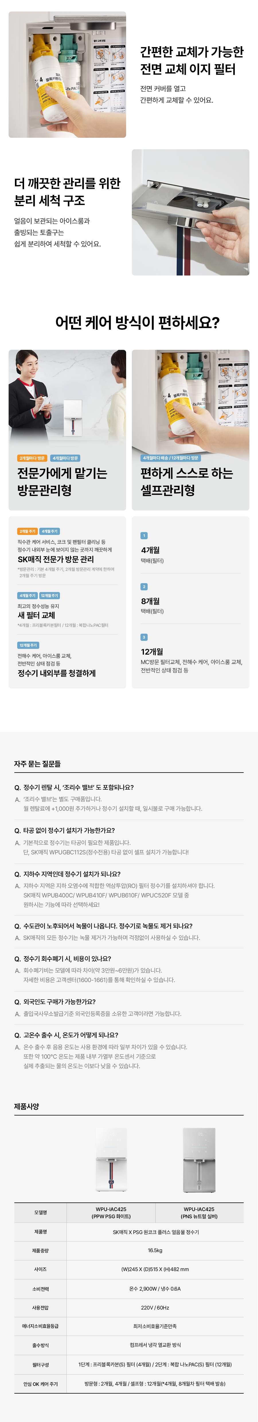 WPU-IAC425P SK매직 [SK매직] PSG 원코크 플러스 얼음물 정수기 제품분류 정수기 정수방식 직수형 기능 얼음냉온 AS기간 렌탈기간내 최저 렌탈가 월 39,000 (렌탈가) 제휴카드 할인가 월 (렌탈가) 3년 5년 6년 셀프관리 방문관리/4개월 셀프관리(타사보상) 방문관리/4개월(타사보상) 제품색상 선택 화이트 + 0원 뉴트럴실버 + 0원 할인 제휴카드 보기 렌탈신청 장바구니