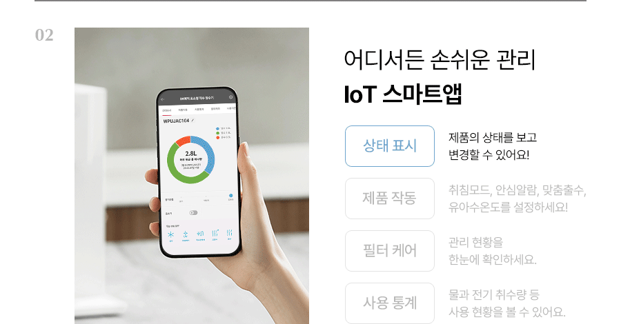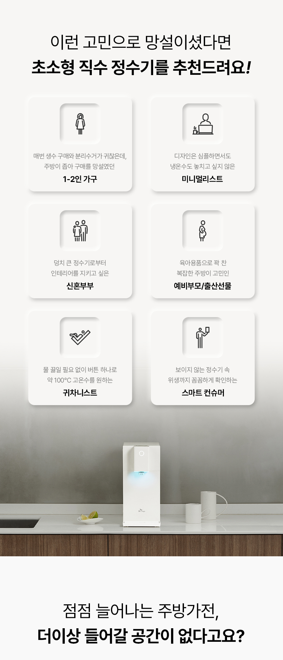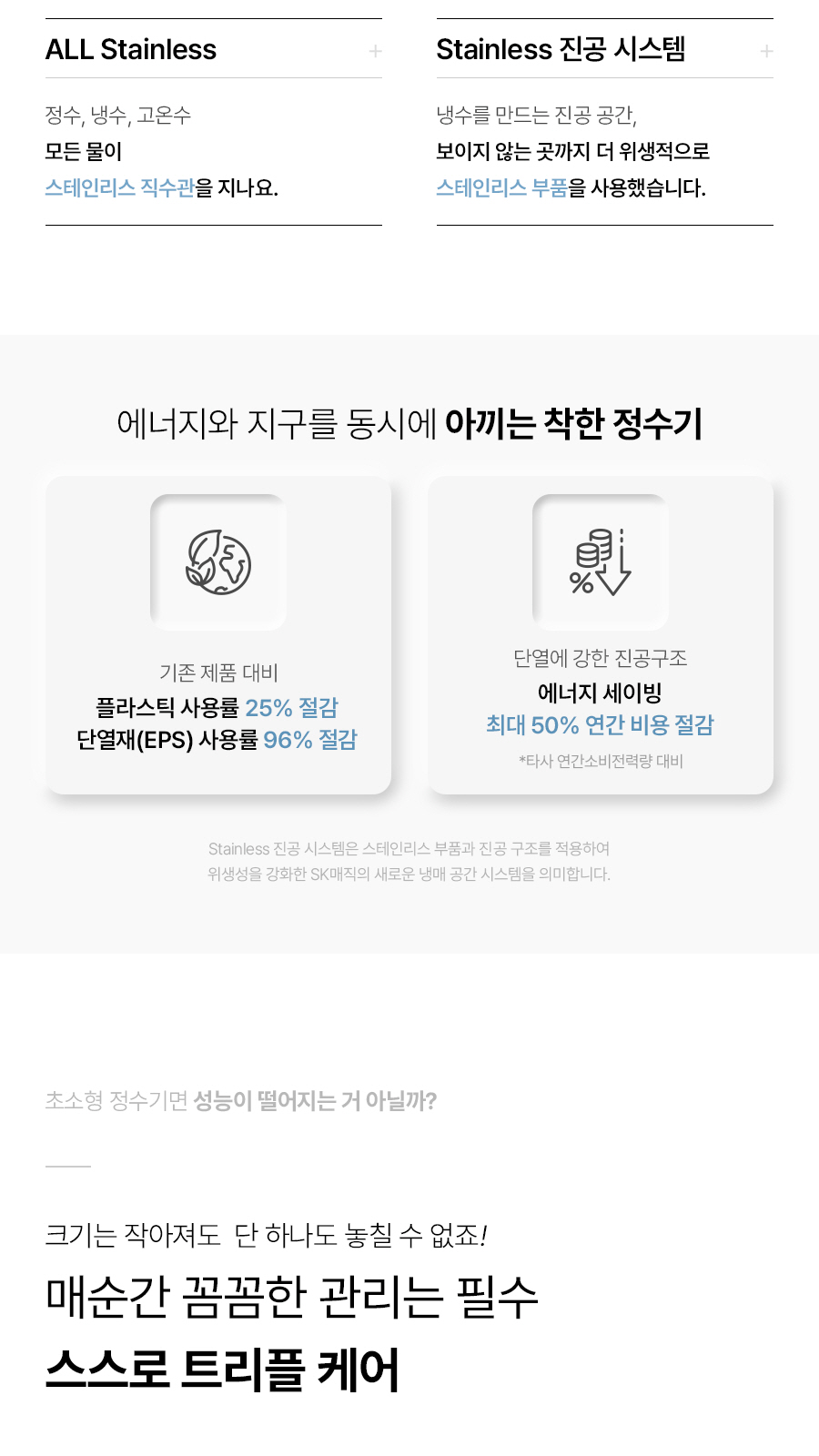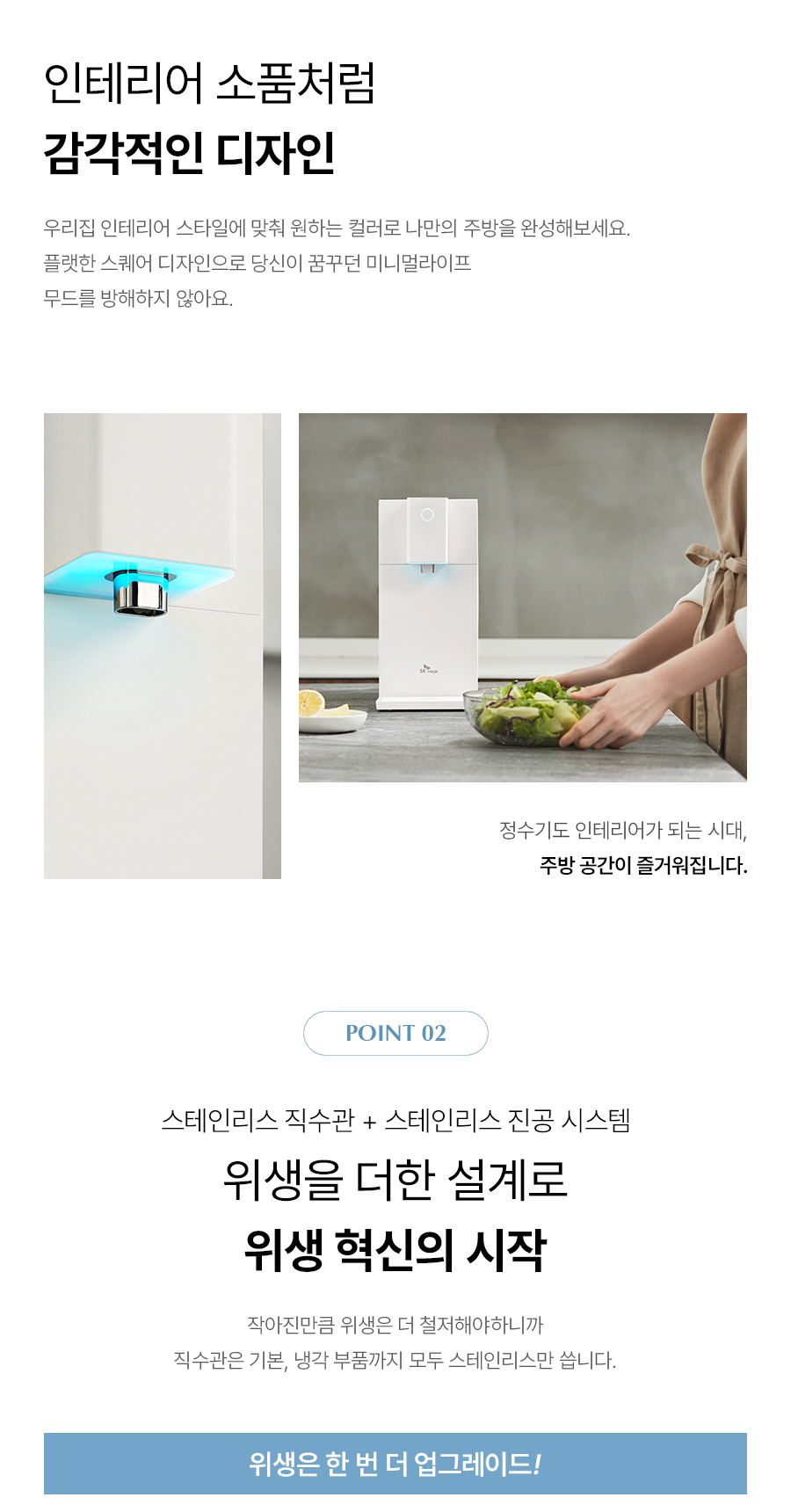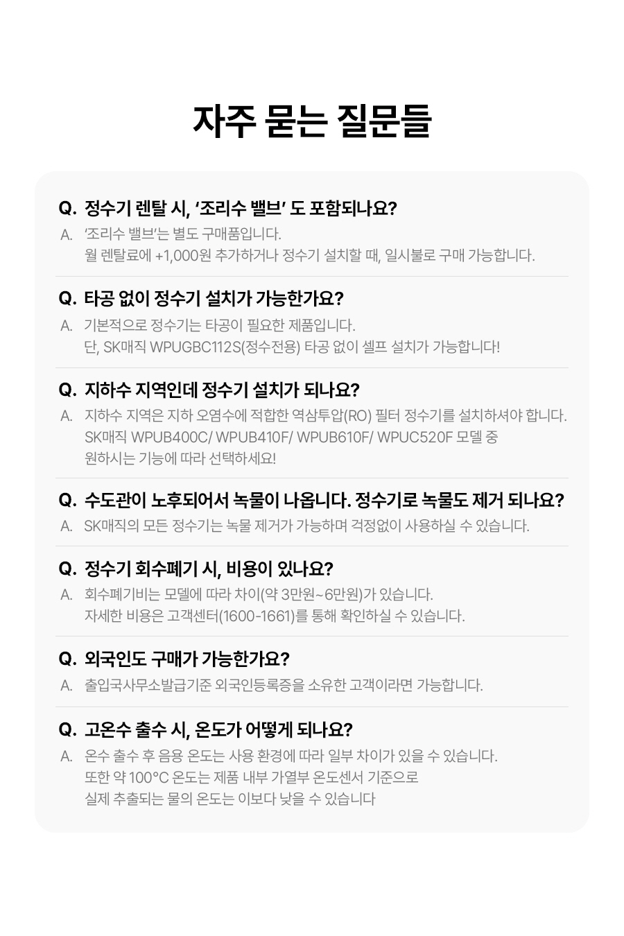 WPU-JAC104S SK매직 [SK매직] 초소형 직수 정수기 제품분류 정수기 정수방식 직수형 기능 냉온전용 AS기간 렌탈기간내 최저 렌탈가 월 27,400 (렌탈가) 제휴카드 할인가 월 (렌탈가) 3년 5년 6년 7년 셀프관리 방문관리/4개월 제품색상 선택 화이트 + 0원 핑크 + 0원 블루 + 0원 다크그레이 + 0원 할인 제휴카드 보기 렌탈신청 장바구니