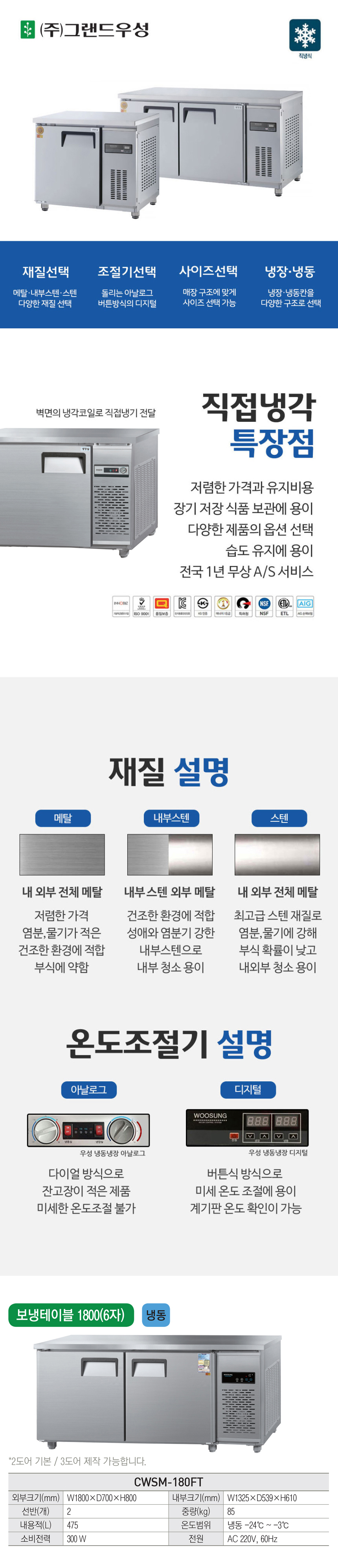 CWSM-180FT_내부스텐 유버스 [그랜드우성] 직냉식 테이블 냉동고 475L 내부스텐 제품분류 업소용 용량(총량) 400L이상 기능 2도어 AS기간 1년 최저 렌탈가 월 48,100 (렌탈가) 제휴카드 할인가 월 (렌탈가) 3년 4년 5년 할인 제휴카드 보기 렌탈신청 장바구니