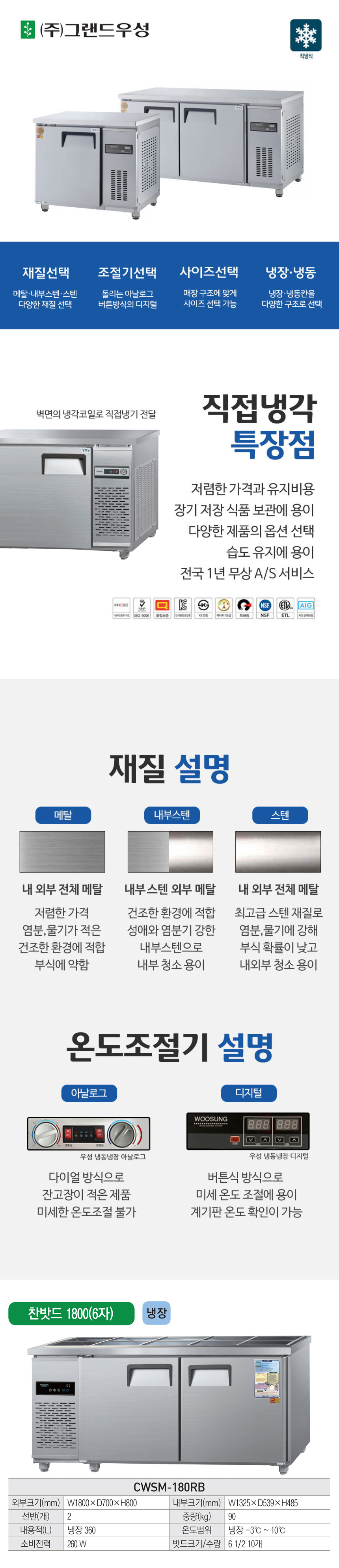 CWSM-180RB_내부스텐 유버스 [그랜드우성] 직냉식 반찬 냉장고 360L 내부스텐 제품분류 업소용 용량(총량) 300L이상 기능 2도어 AS기간 1년 최저 렌탈가 월 46,300 (렌탈가) 제휴카드 할인가 월 (렌탈가) 3년 4년 5년 할인 제휴카드 보기 렌탈신청 장바구니
