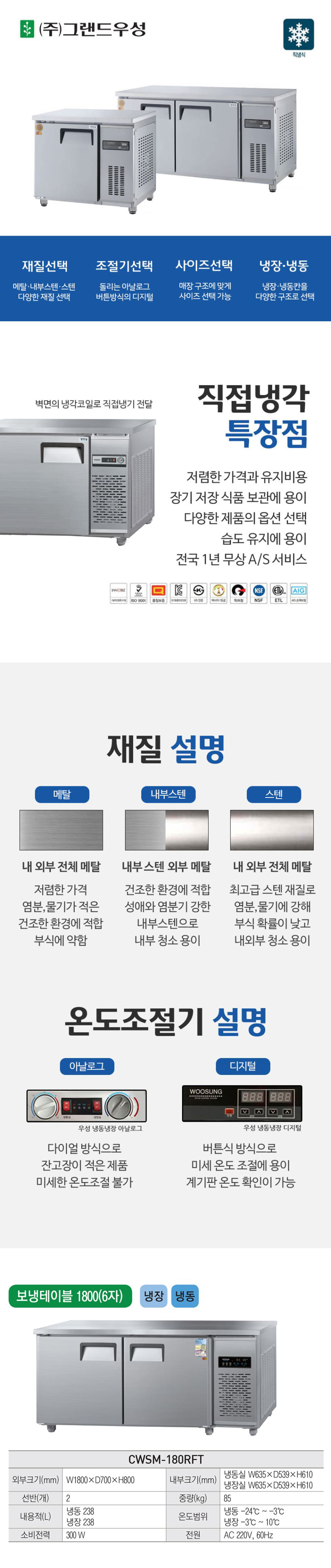 CWSM-180RFT_올스텐 유버스 [그랜드우성] 직냉식 테이블 냉장고+냉동고 476L 올스텐 제품분류 업소용 용량(총량) 400L이상 기능 2도어 AS기간 1년 최저 렌탈가 월 55,000 (렌탈가) 제휴카드 할인가 월 (렌탈가) 3년 4년 5년 할인 제휴카드 보기 렌탈신청 장바구니