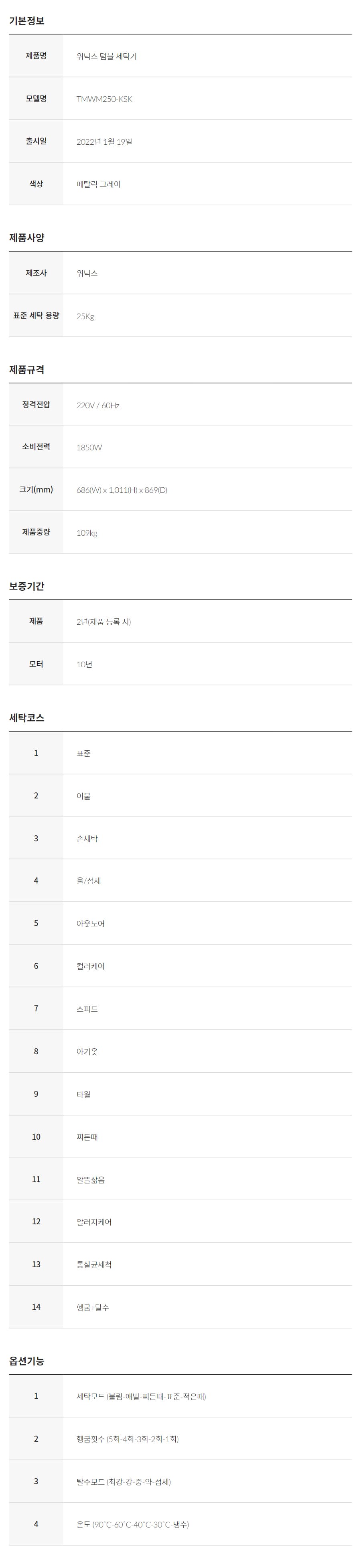 TMWM250-KSK+HGXH190-KSK+AN555UJ 스마트렌탈 [위닉스+아남] 텀블 세탁기 25kg 메탈릭 그레이+텀블 건조기 19kg 메탈릭 그레이+UHD TV 55인치 제품분류 세탁기패키지 건조기패키지 TV패키지 AS기간 제조사별 최저 렌탈가 월 77,900 (렌탈가) 제휴카드 할인가 월 (렌탈가) 3년 4년 5년 할인 제휴카드 보기 렌탈신청 장바구니