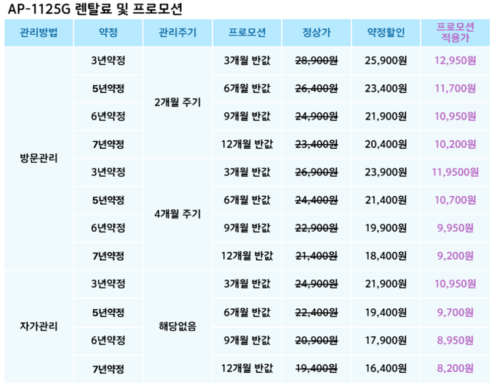 1577-6361 빠르고 간편한 렌탈 상담신청 개인정보 수집/이용 내용보기 동의 미동의 ※ 개인정보수집이용 동의 1. 개인정보의 수집 및 이용목적 : 원활한 렌탈 상담 및 주문을 위한 참조자료로 아래와 같은 항목의 개인정보를 수집하고 있습니다 2. 수집하려는 개인정보 항목 : 필수 수집항목 : 이름, 연락처 3. 개인정보의 보유 및 이용기간 : 수집된 정보는 이용자의 정보 삭제 요구 시까지 보관, 활용하며 수집 및 이용 목적이 달성된 후 해당 정보를 지체 없이 파기합니다. 단순 상담고객 3개월 후 파기 / 계약 고객 12개월 후 파기 4. 개인정보 취급 담당자 : 이름 : 박솔아연락처 : 1577-6361 5. 개인정보 수집 동의거부 사항 : 이용자의 개인정보는 원활한 상담을 위해 수집하고 있으며, 동의하지 않을 경우 상담 및 주문이 제한됩니다. [닫기]